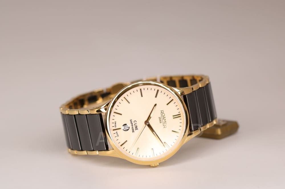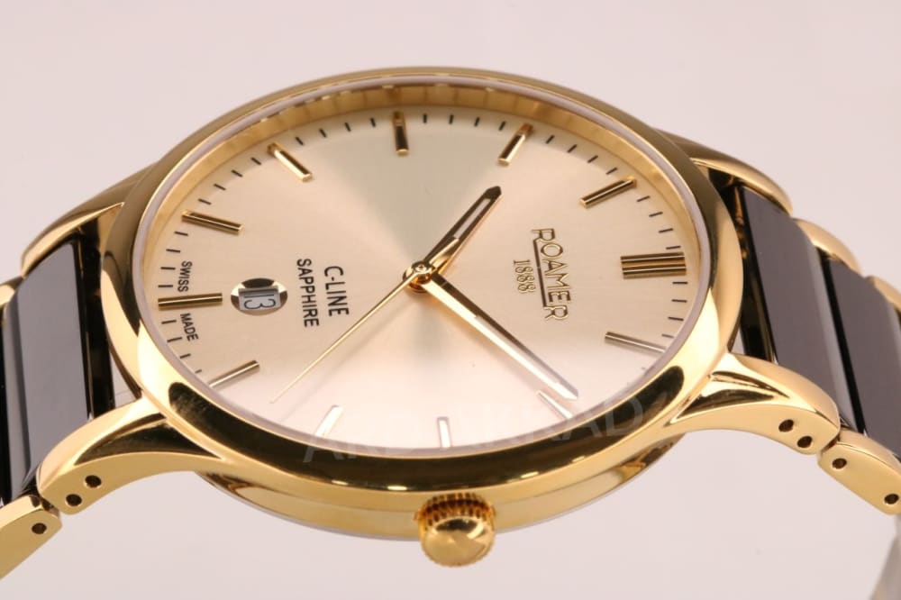 - السير من الستانلس ستيل المطلي باللون الذهبي والمطعم بالسيراميك الاسود