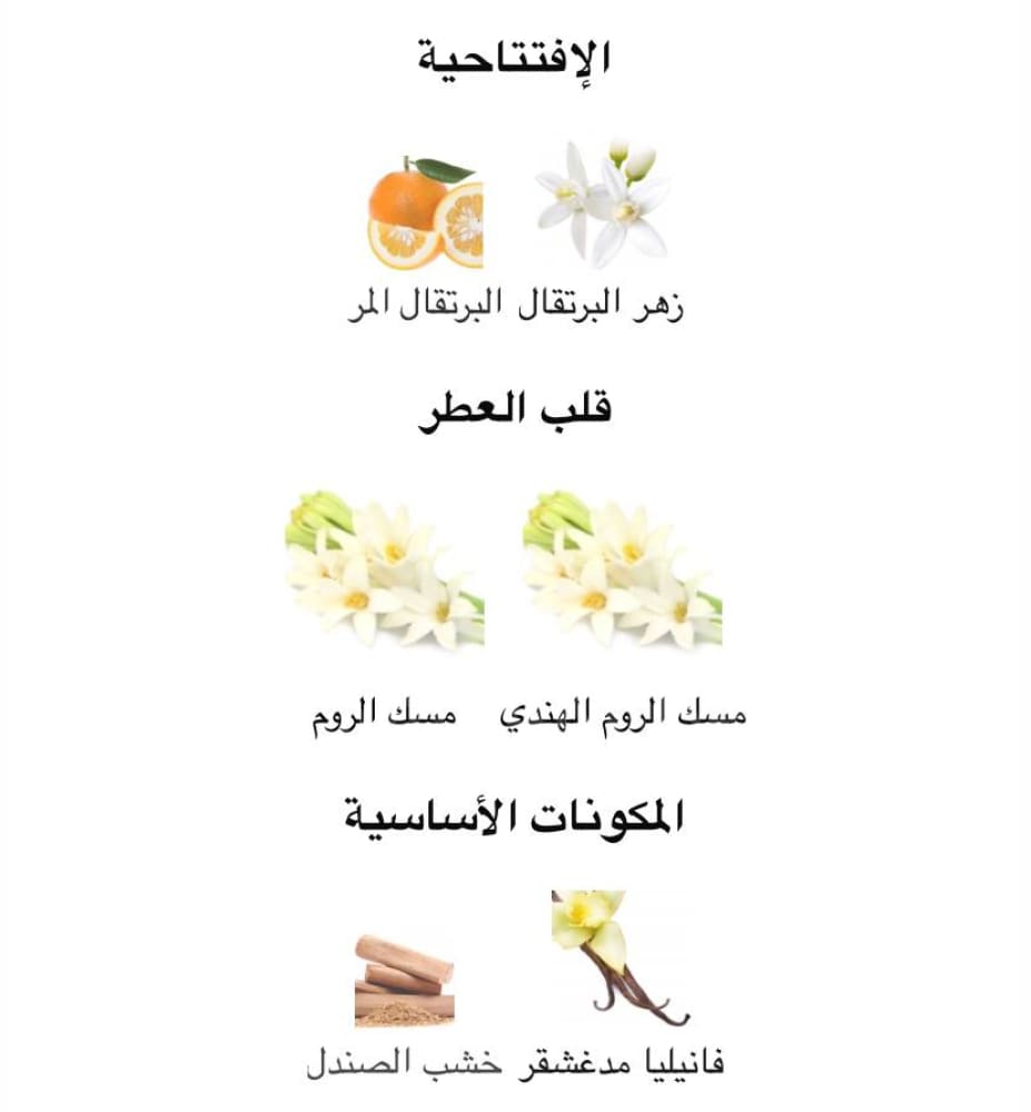 - الفانيلا - مسك الروم - الحمضيات - حيواني - خشبي - ناعم - حلو