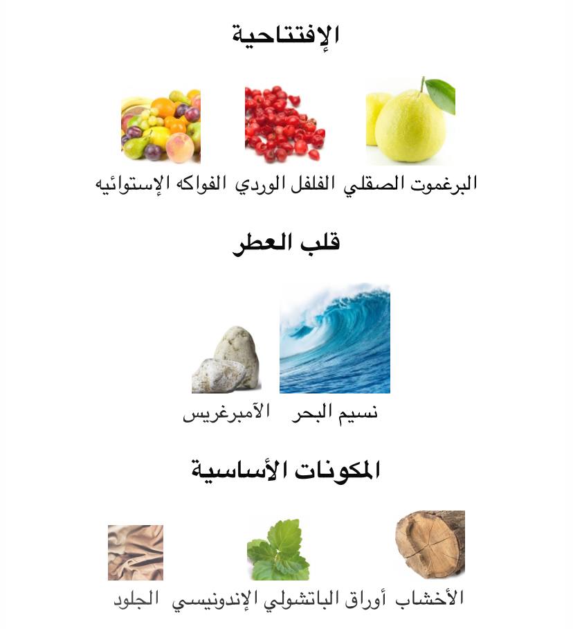 - بحري/ اروماتك/ الحمضيات/ خشبي/ فاكهي/ مالح/ حلو/ توابل ناعم/ العنبر/تابلي منعش