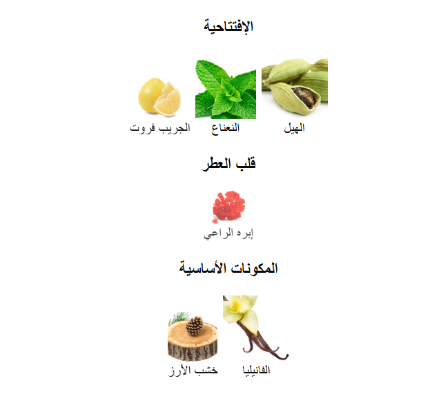- عشبي/اروماتك/تابلي منعش/العنبر/تابلي دافئ/الفانيليا/خشبي/ناعم