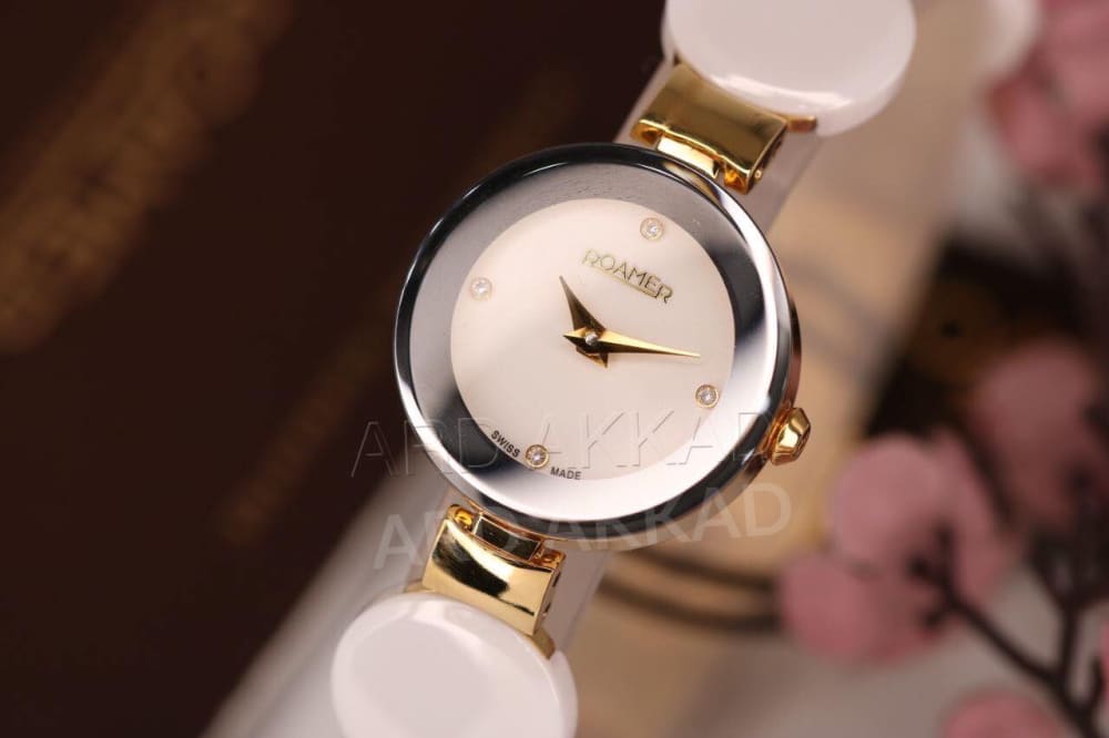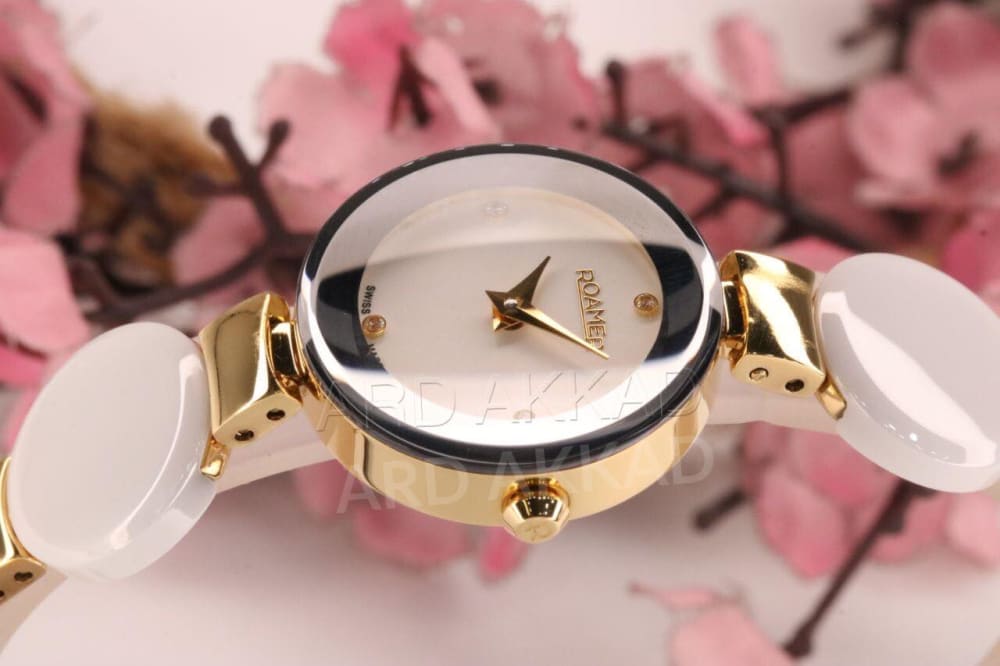 - لون الحزام ذهبي مطعم بالسيراميك الأبيض