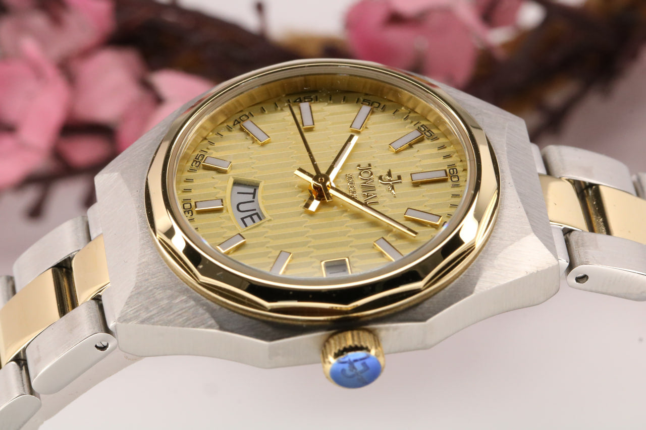 - لون الحزام فضي مطعم بالذهبي