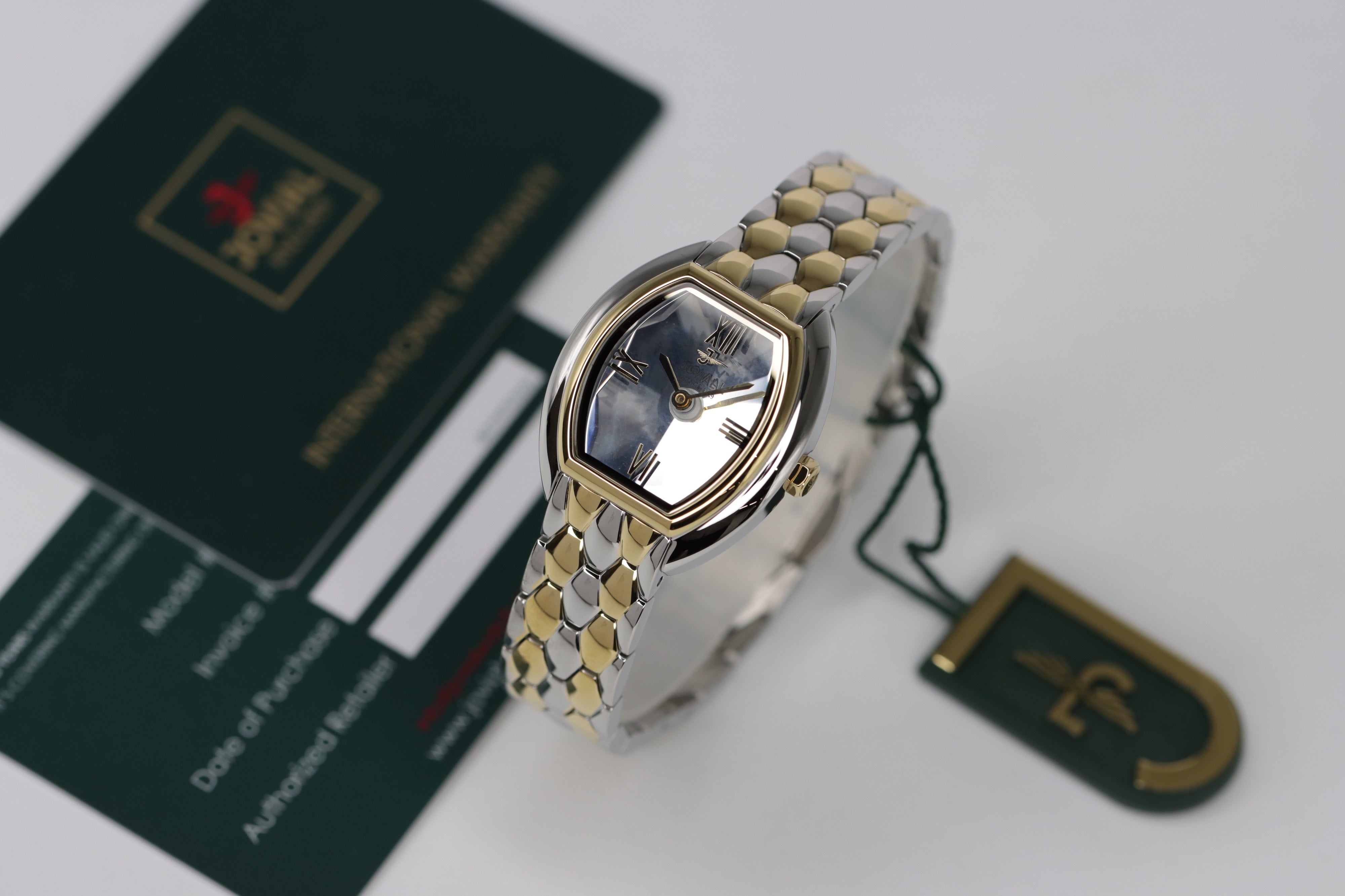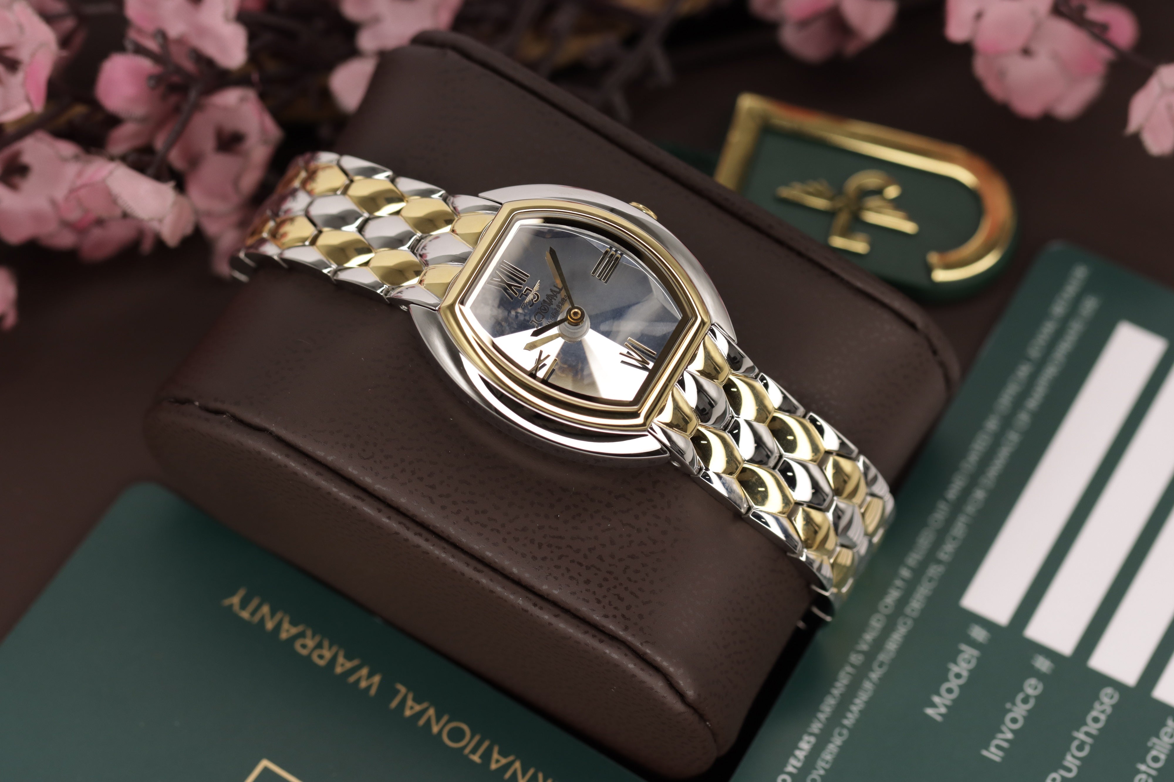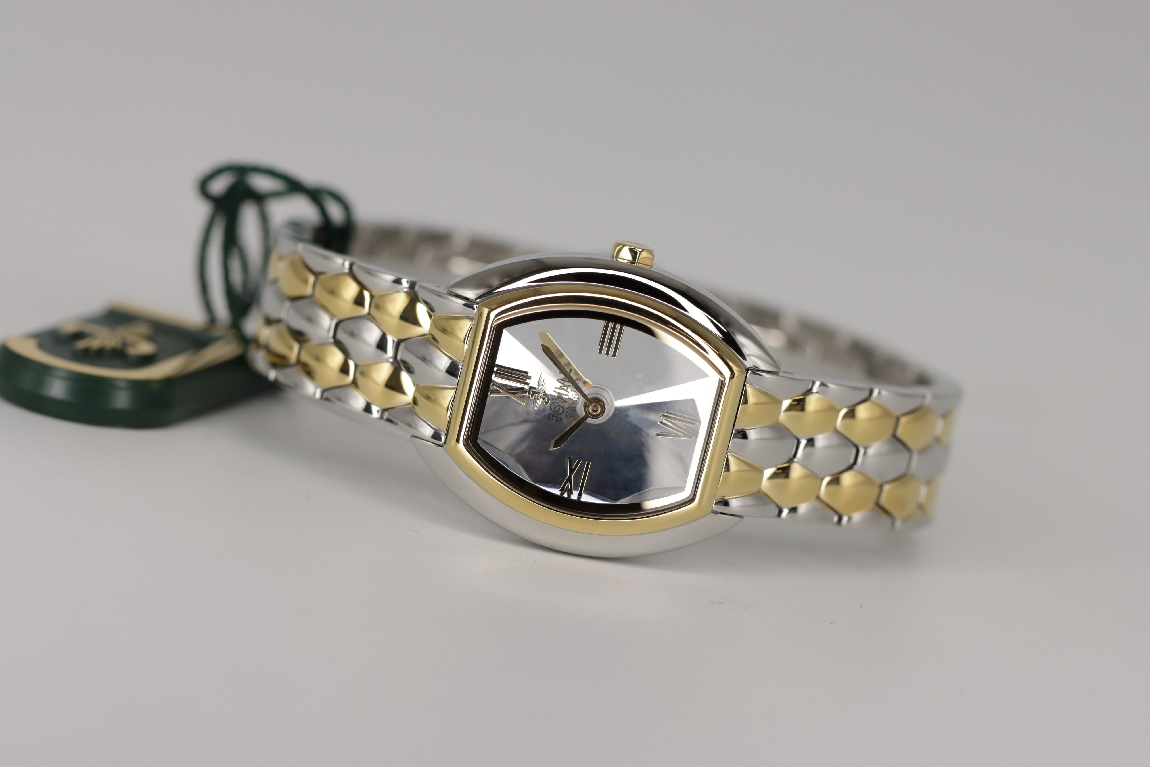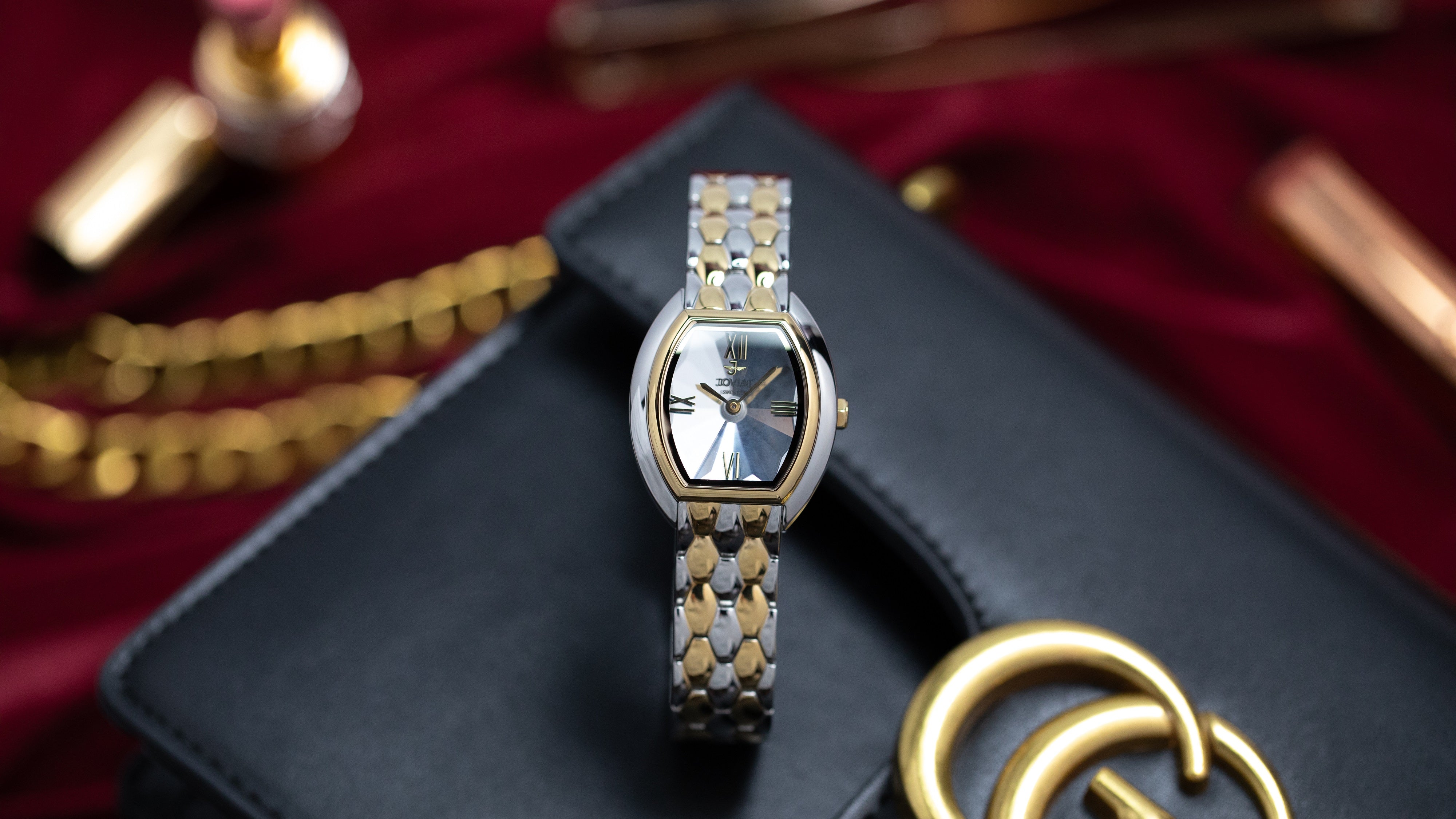 - لون الحزام فضي مطعم بالذهبي
