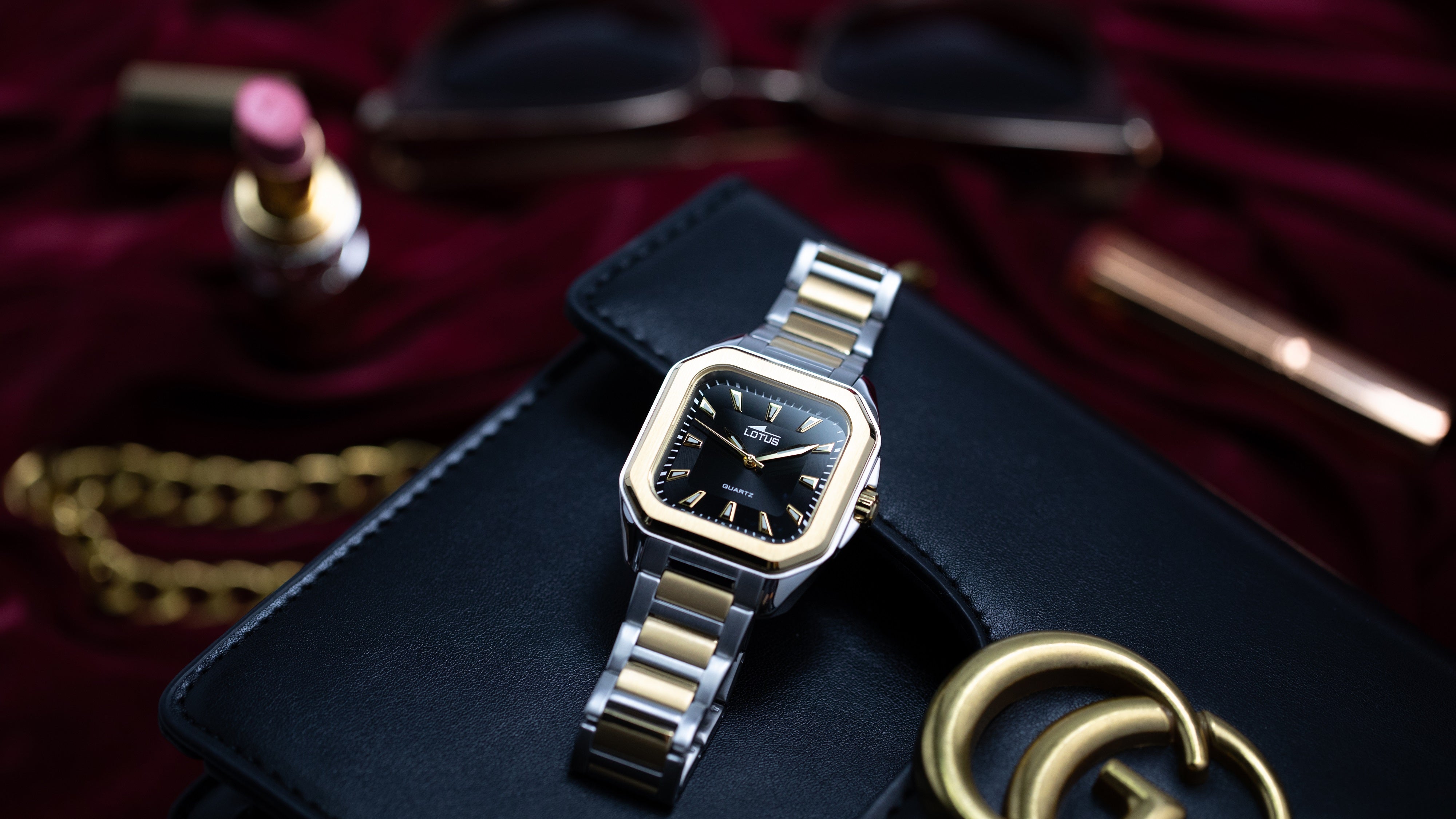 - لون الحزام فضي مطعم بالذهبي