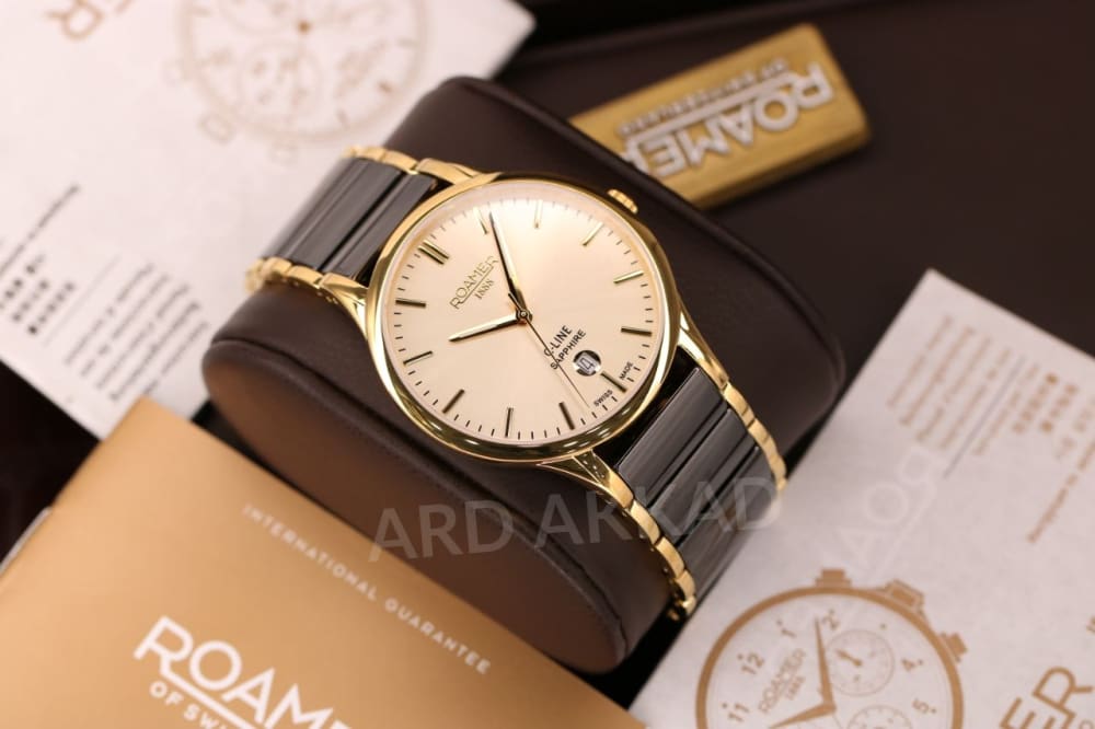 - السير من الستانلس ستيل المطلي باللون الذهبي والمطعم بالسيراميك الاسود