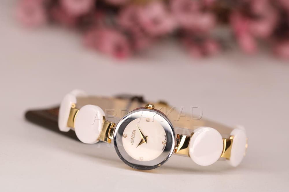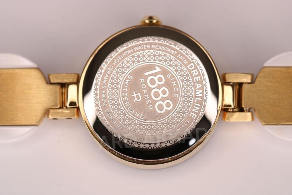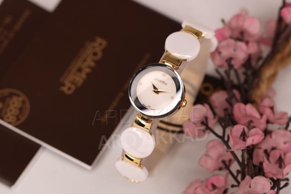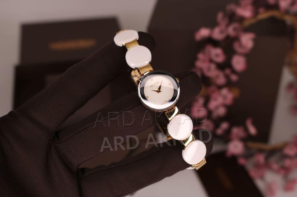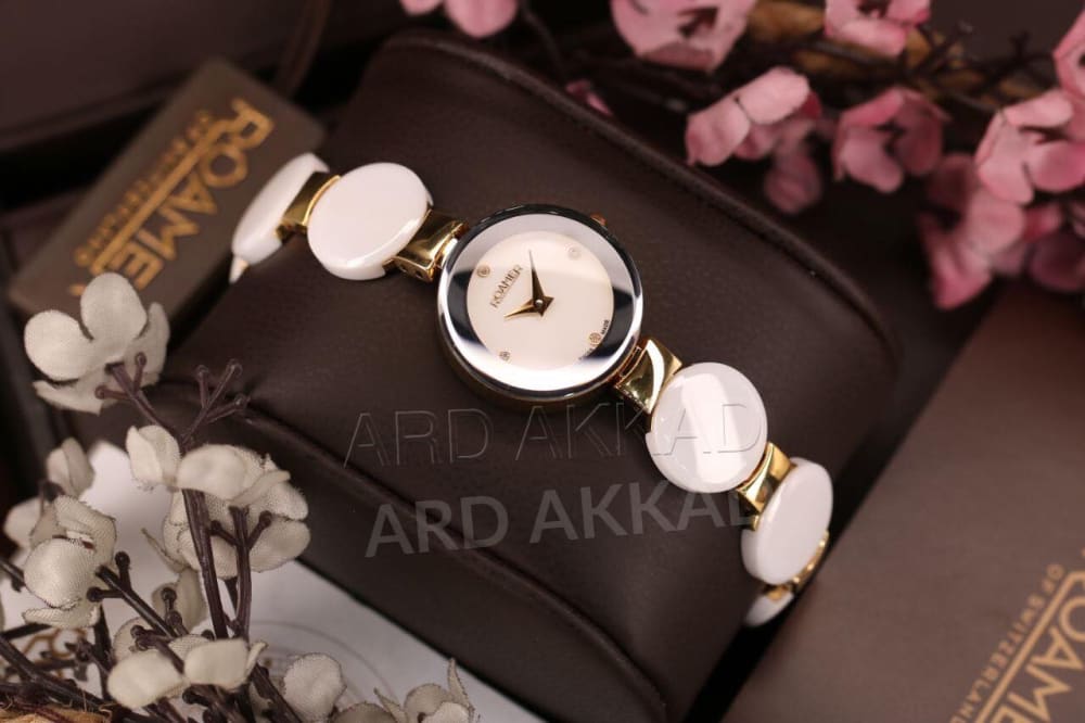 - لون الحزام ذهبي مطعم بالسيراميك الأبيض
