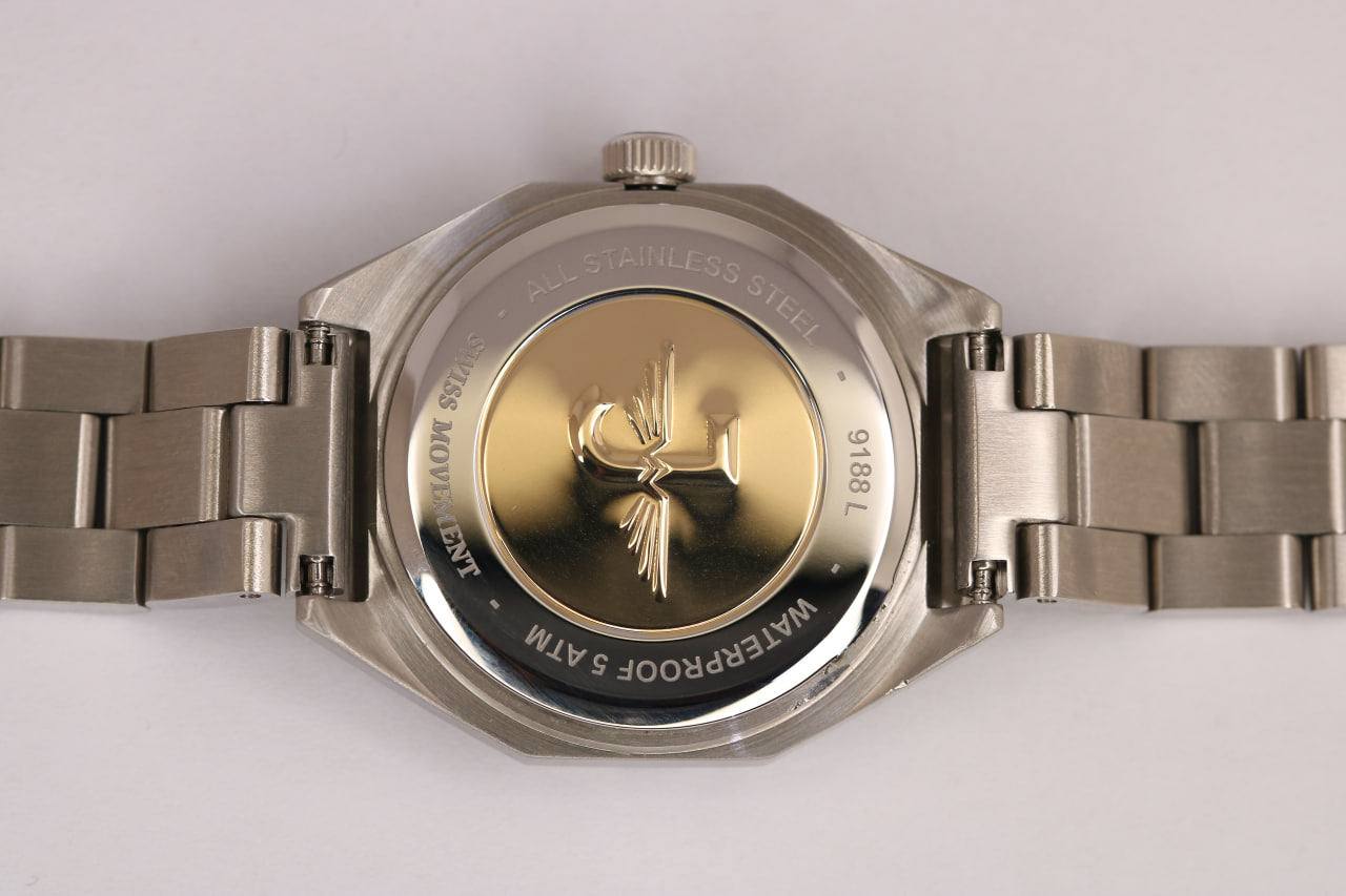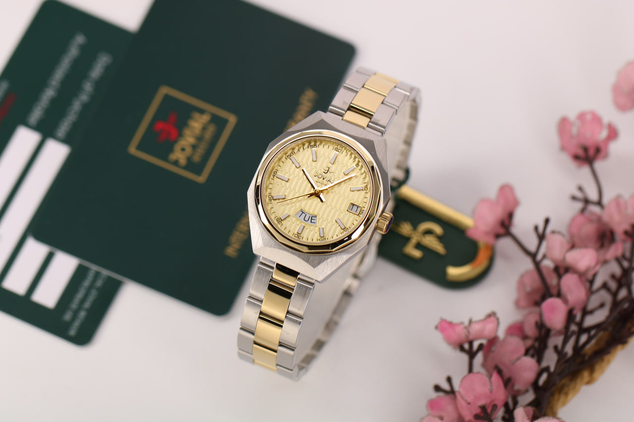 - لون الحزام فضي مطعم بالذهبي