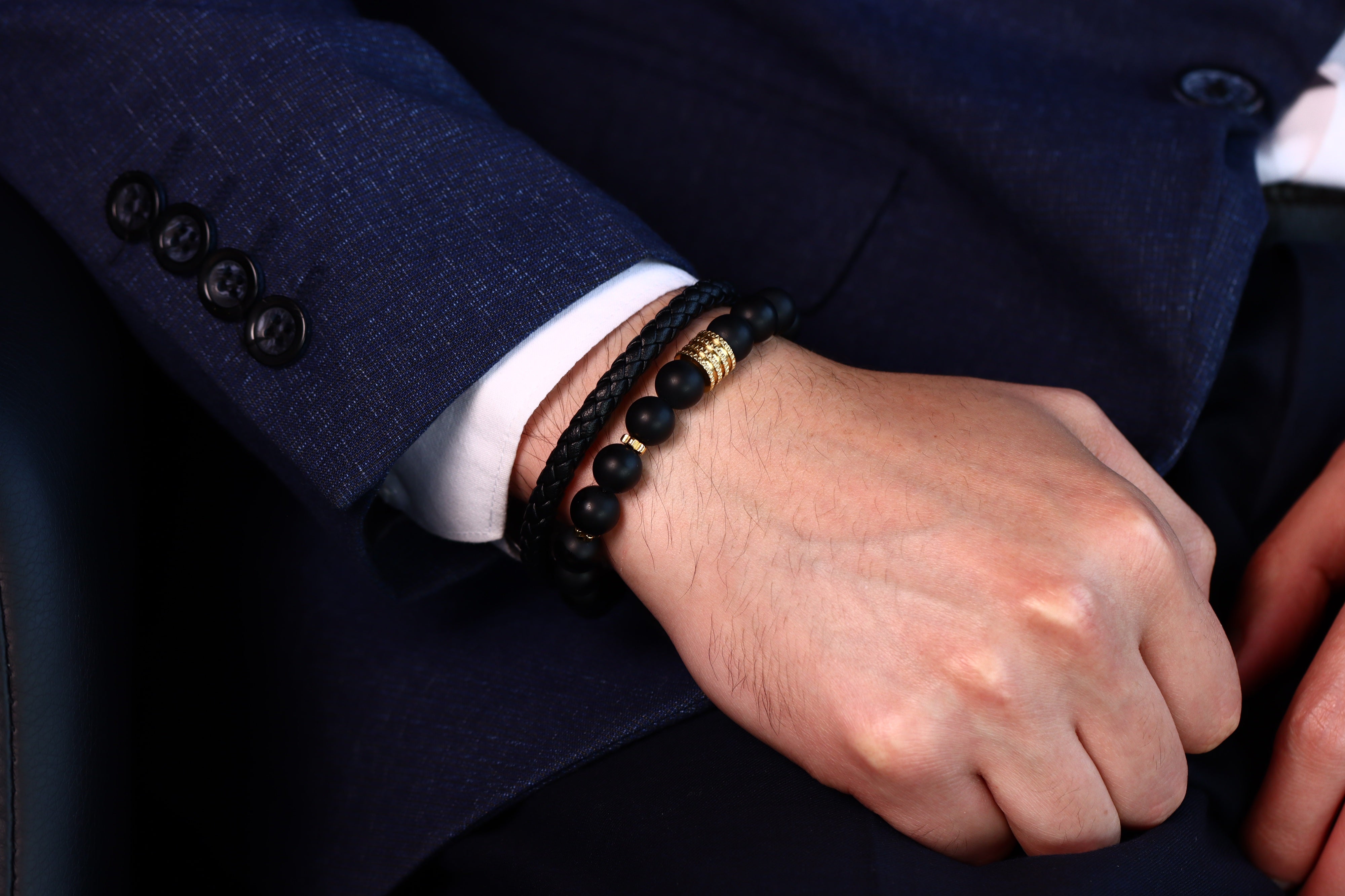 - السوار جلد مطعم بالستانلس ستيل